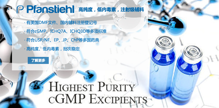 “熱烈祝賀Pfanstiehl的注射級甘氨酸Glycine(G-140)喜獲CDE登記號F20250000403, 這是Pfanstiehl產品獲得的第18個CDE登記號!”甘氨酸在醫藥輔料制劑中應用廣泛,, 可作為緩沖劑,增溶劑,穩定劑等,具有諸多優勢。Pfanstiehl秉承一貫高品質理念,為滿足全球生物制藥行業對于高品質甘氨酸的需求,隆重推出的注射級甘氨酸Glycine (G-140), 具有超高純度,超低內毒素,超低金屬殘留的特點,單獨檢測29種金屬離子,并且新增DNA,RNA,DNA酶,RNA酶和脂肪酶,亞硝酸鹽等多項質量指標的檢測,符合多國藥典規定(USP, EP, BP, JPE, ChP),可用于生物治療性藥物和疫苗的生產。產品信息:· 產品名稱:Glycine, High Purity, Low Endotoxin, Low Metals, USP, EP, BP, JPE, ChP (G-140)· 中文名稱:甘氨酸· 分子式:C2H5NO2· 分子量:75.07 g / mol· CAS號:56-40-6· 產品貨號:G-140產品特點: · 超高純度,超低內毒素,超低微生物含量,超低金屬雜質殘留· 質量指標新增DNA,RNA,DNA酶,RNA酶,脂肪酶和亞硝酸鹽檢測· 符合多國藥典:USP, EP, BP, JPE, ChP· 符合ICH Q3D標準· 符合GMP標準· 已獲DMF和CDE登記號 產品應用:· 緩沖劑· 穩定劑· 增溶劑如果您對Pfanstiehl注射級別Glycine G-140感興趣,歡迎聯系Pfanstiehl 中國區代理商北京西美杰科技有限公司獲得如下詳細的產品概況說明文件和測試樣品。Pfanstiehl Inc.最新產品系列如下,歡迎聯系北京西美杰科技有限公司獲取100g裝免費樣品。北京西美杰科技有限公司為Pfanstiehl中國代理,為客戶提供完善的技術支持與售后服務。歡迎撥打西美杰客服電話400-050-4006或者登陸網站www_xmjsci_com.btgrsh.com了解更多信息。 更多>